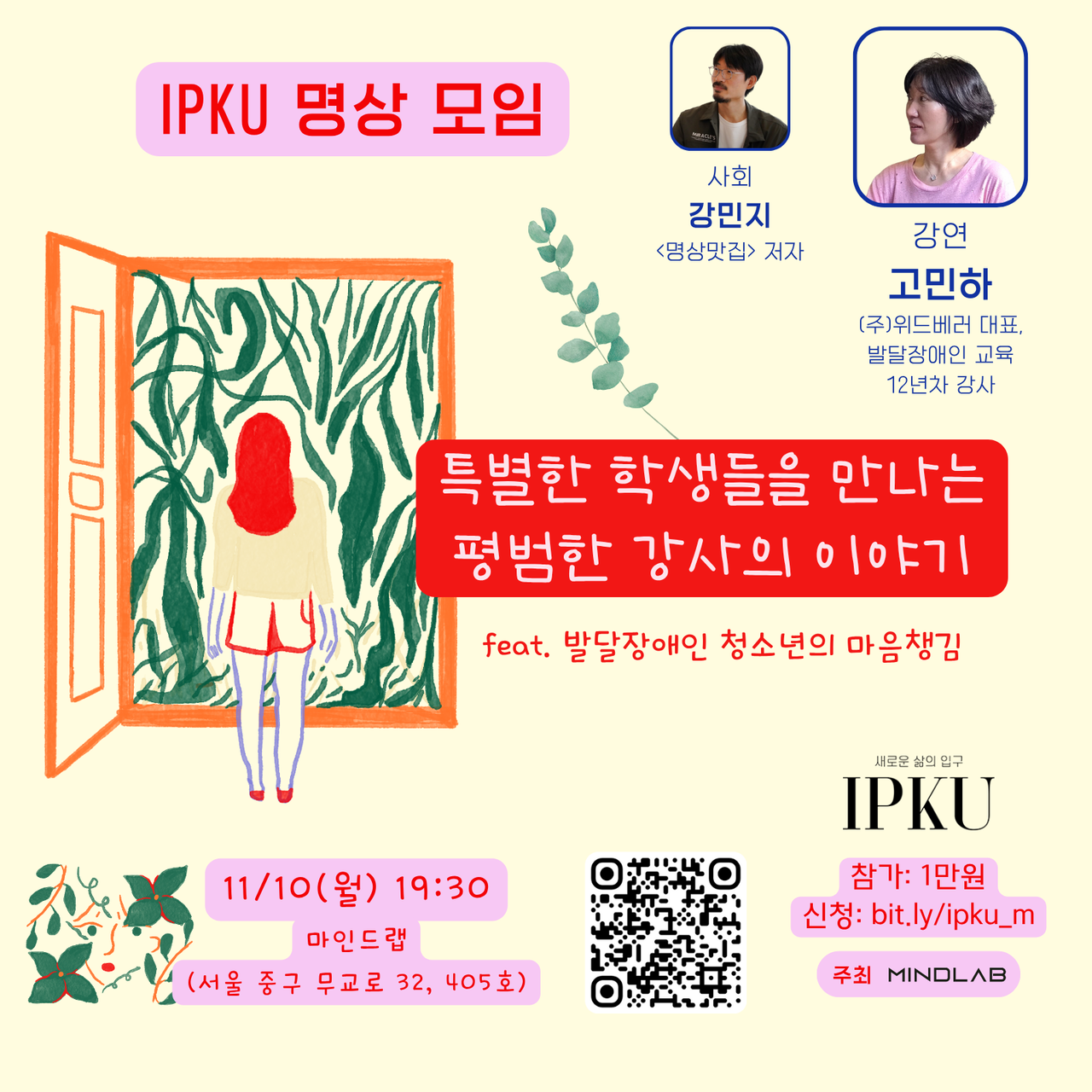 마인드랩에서는 젊은 명상가/활동가/연구자들로 구성된 "입구(IPKU)지기" 와 함께 정기 커뮤니티 모임(매월 둘째/넷째 월요일)을 운영합니다.